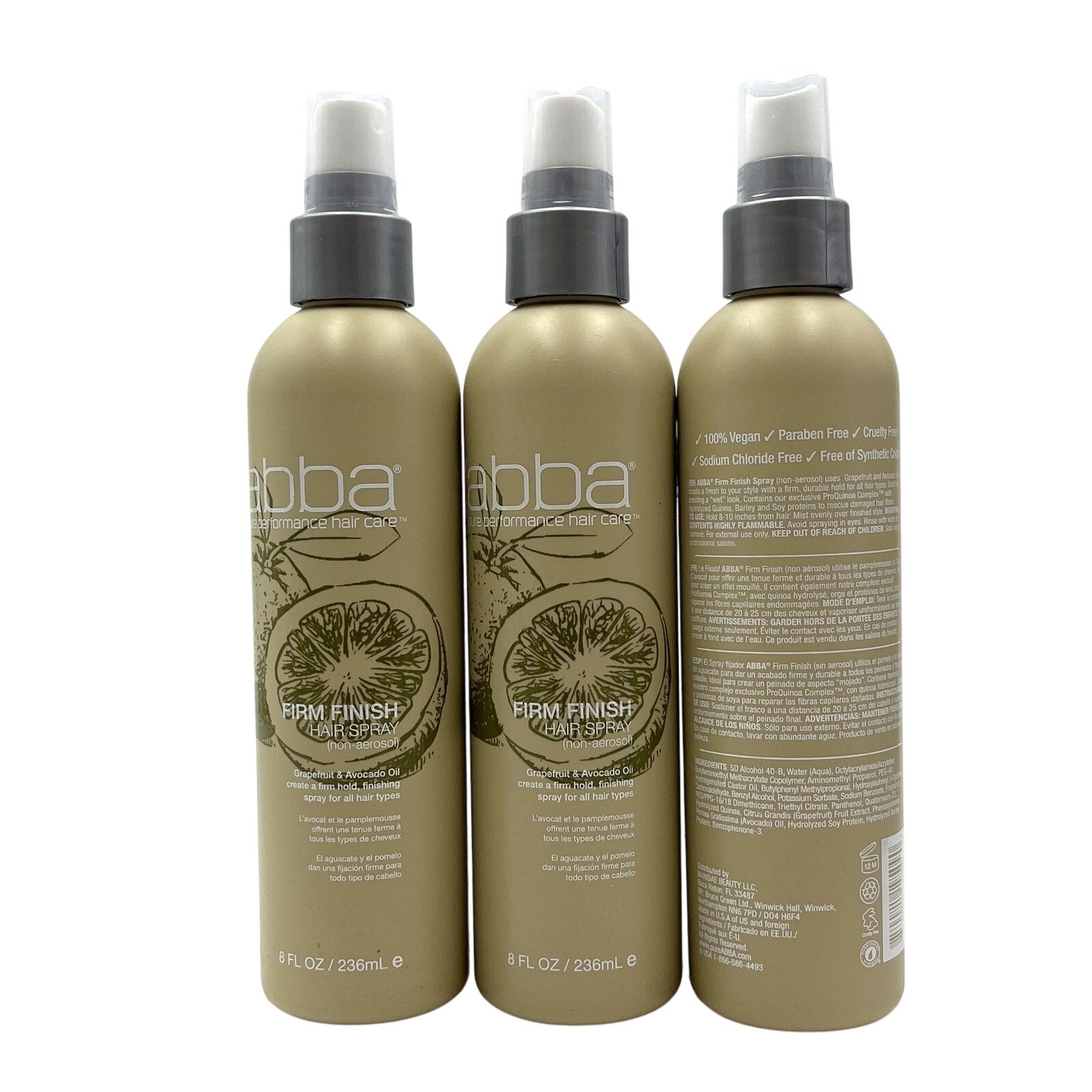 Abba Firm Finish Hairspray (Non Aerosol), 8 oz-3 Pack