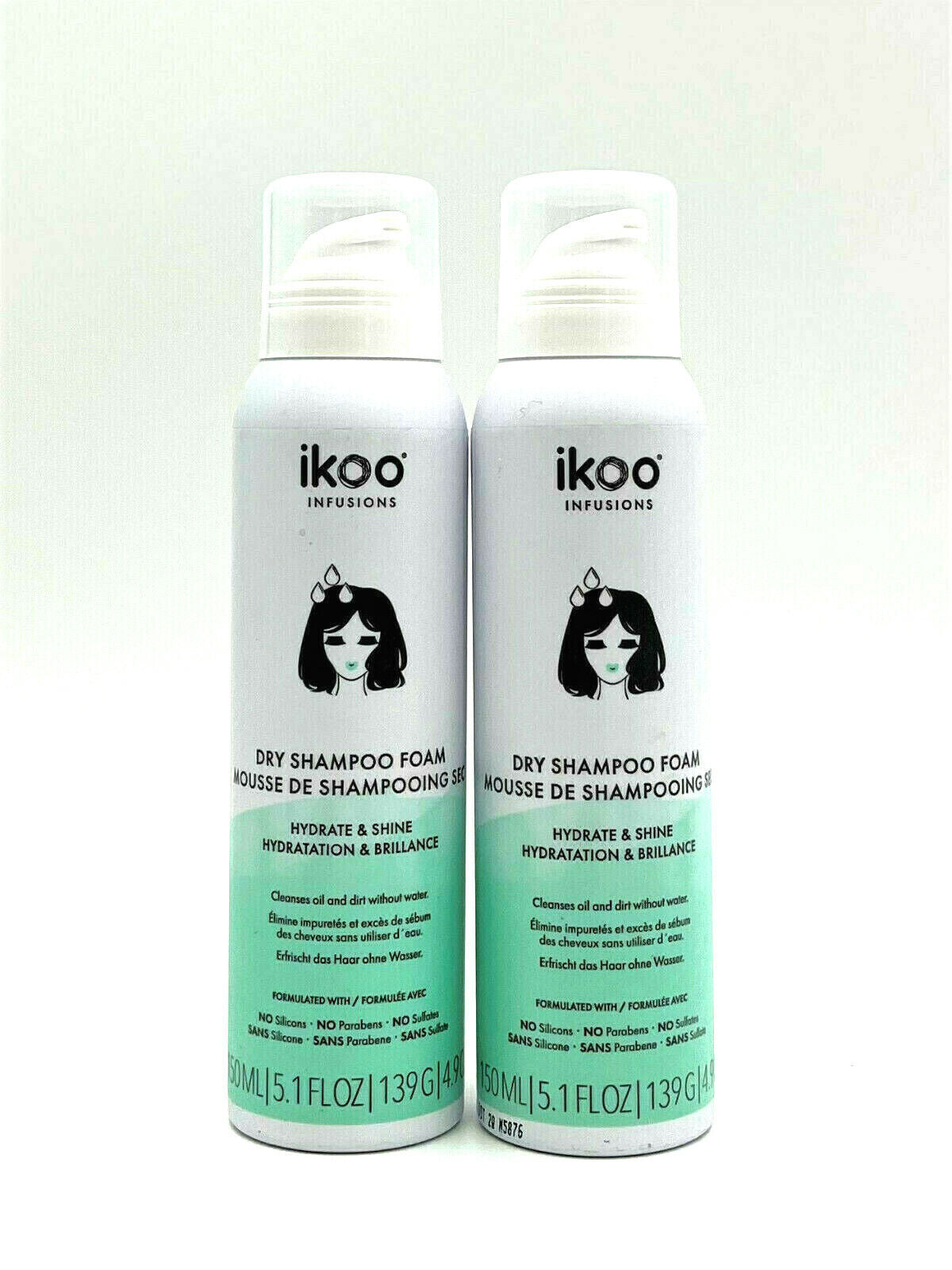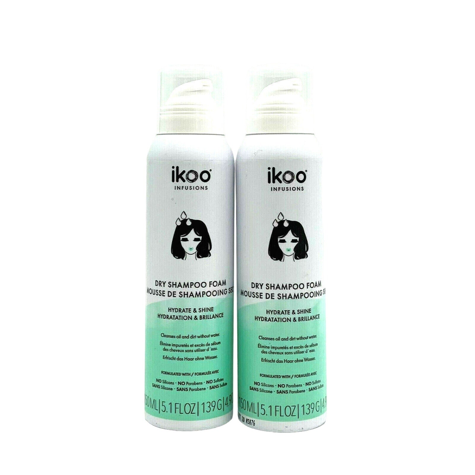 Ikoo Infusions Dry Shampoo Foam Hydrate & Shine 5.1 oz-Pack of 2