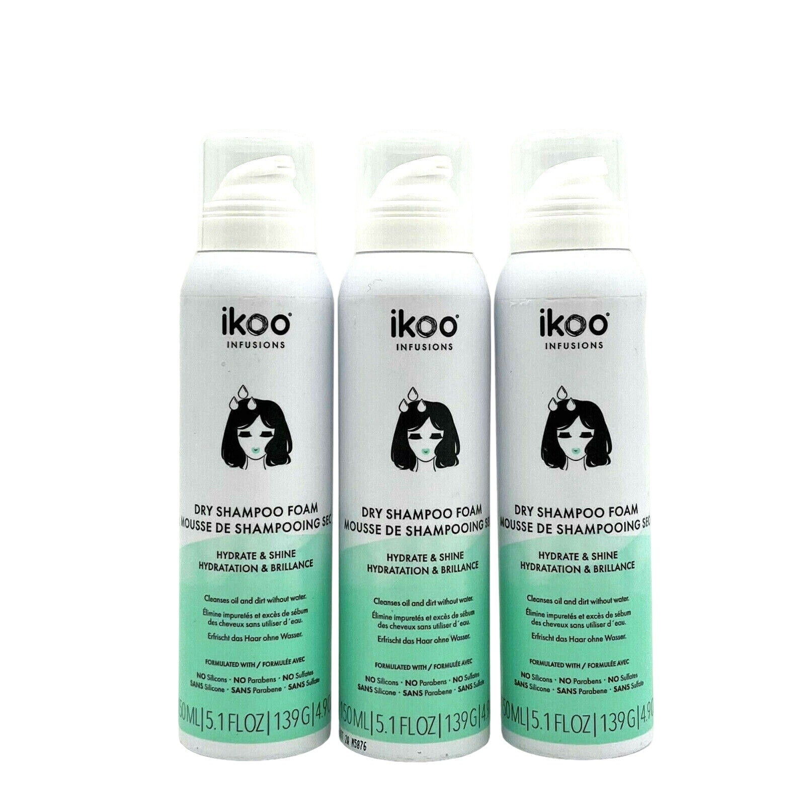 Ikoo Infusions Dry Shampoo Foam Hydrate & Shine 5.1 oz-Pack of 3