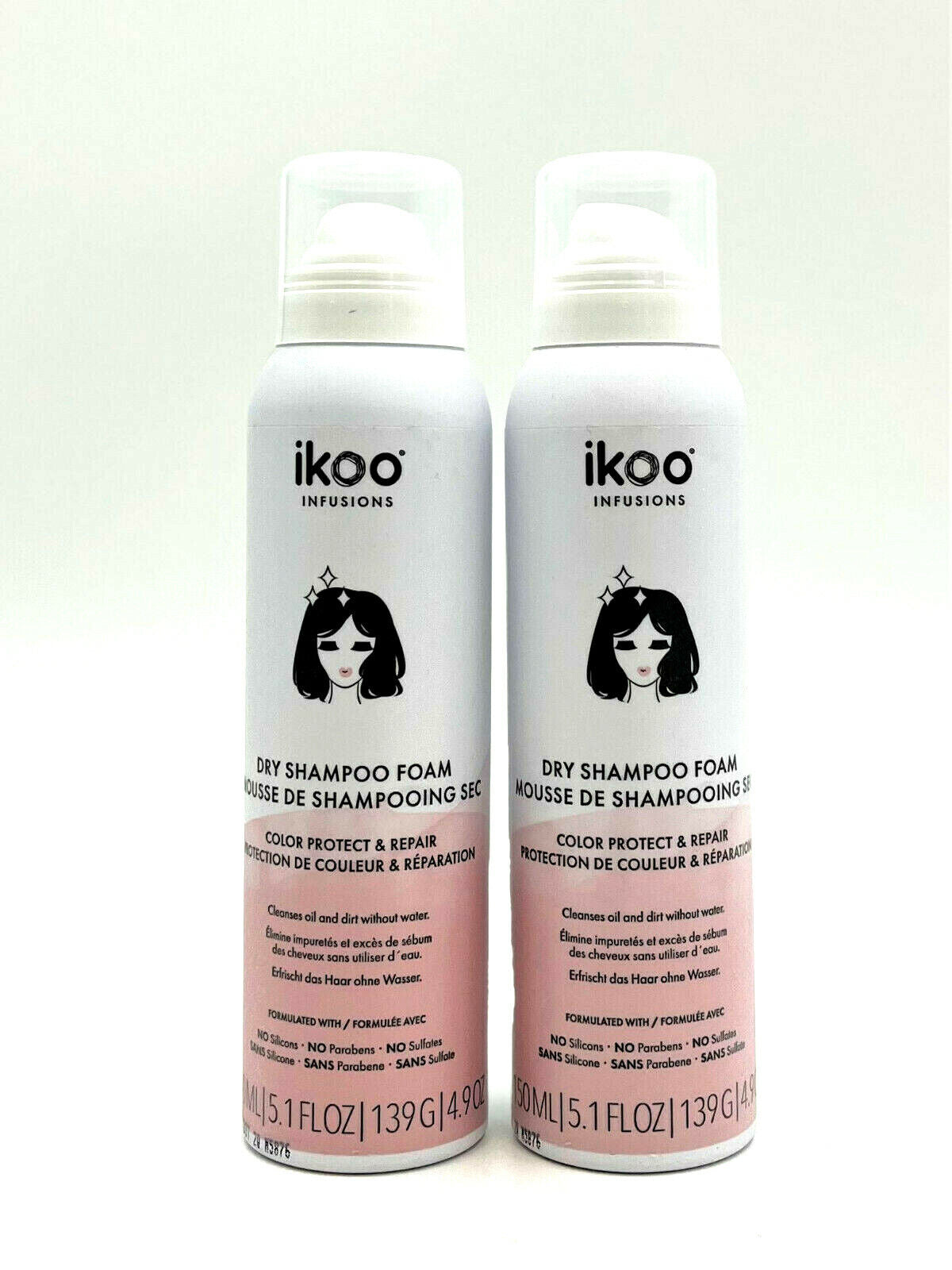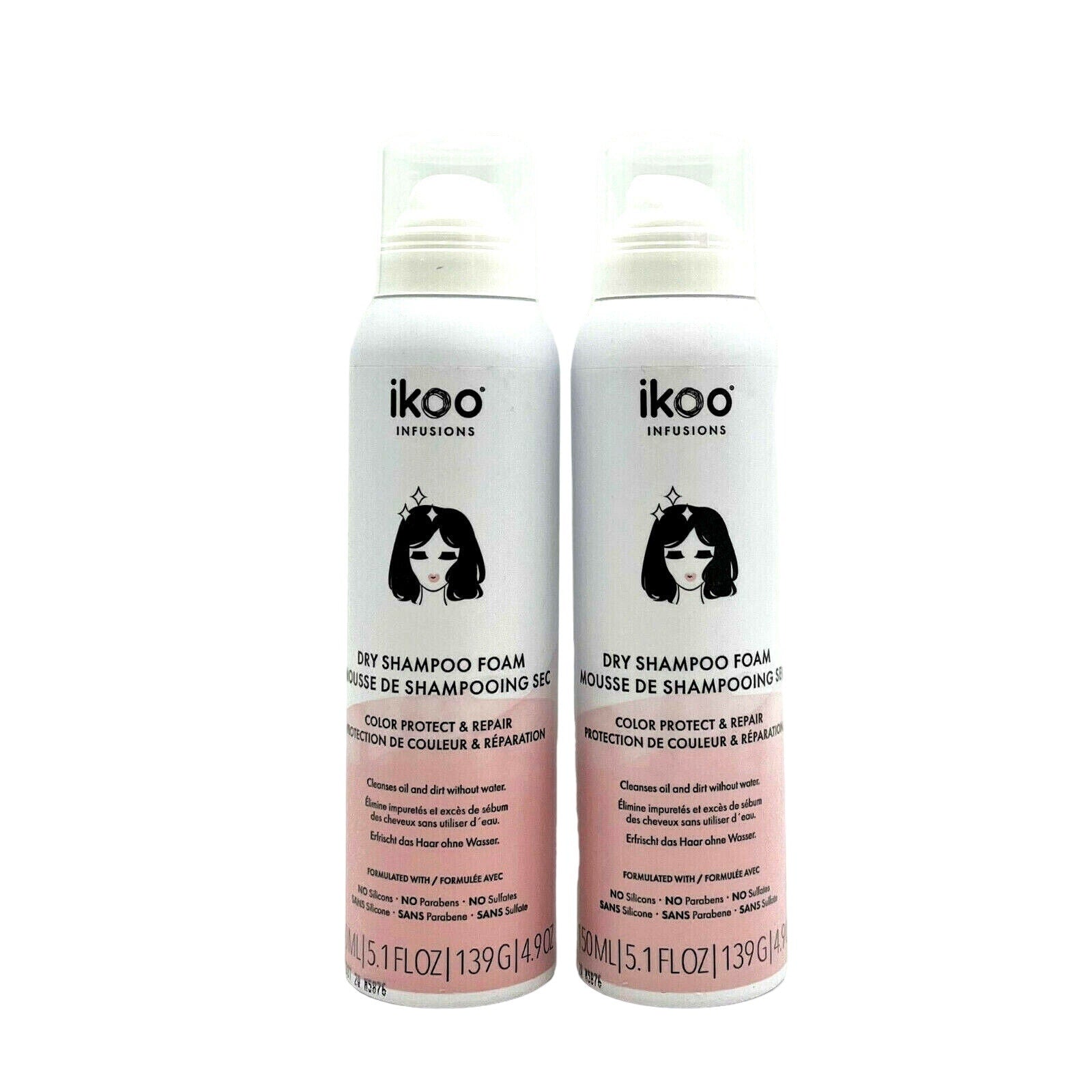 Ikoo Infusions Dry Shampoo Foam Color Protect & Repair 5.1 oz-Pack of 2