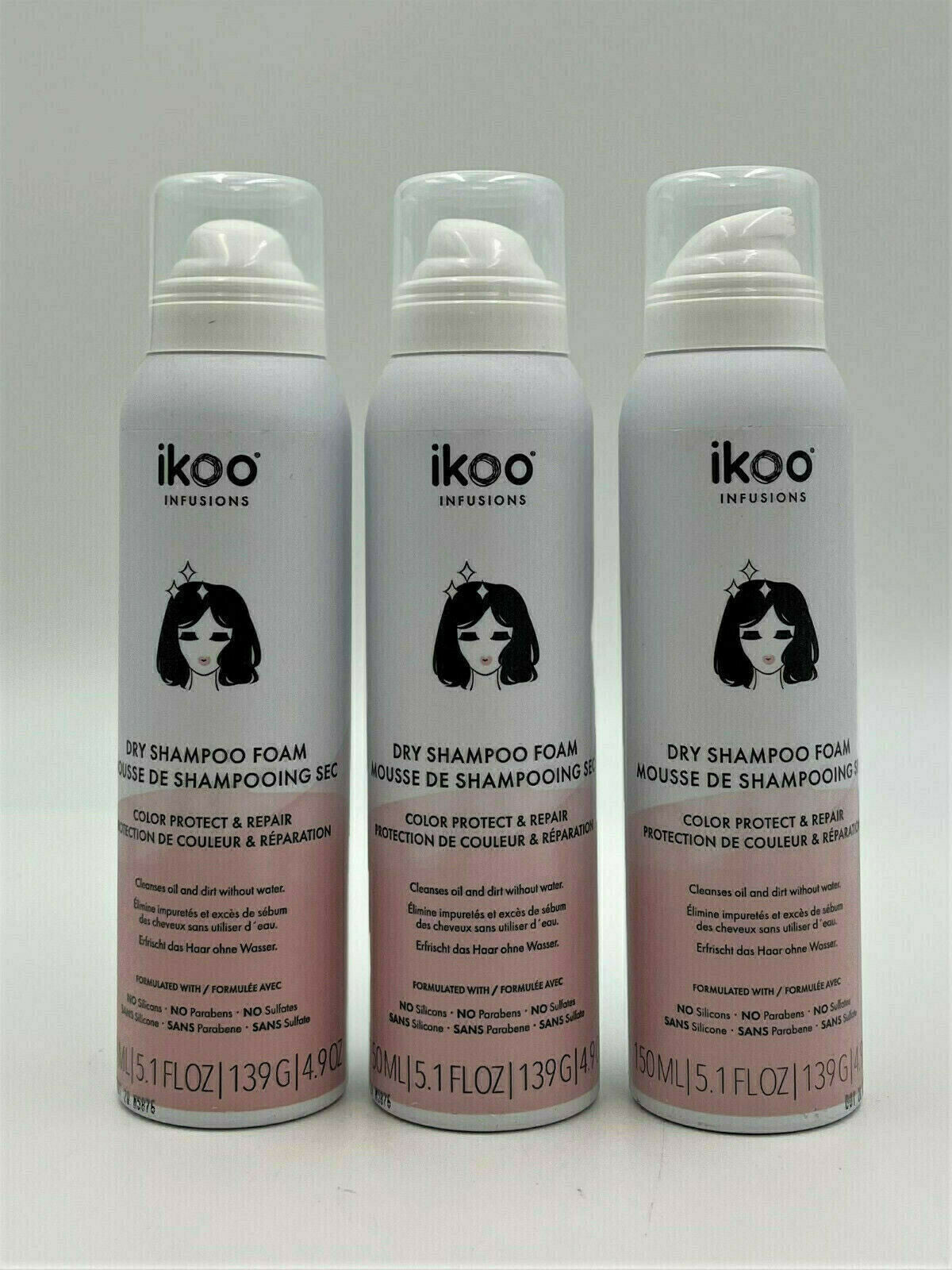 Ikoo Infusions Dry Shampoo Foam Color Protect & Repair 5.1 oz-Pack of 3