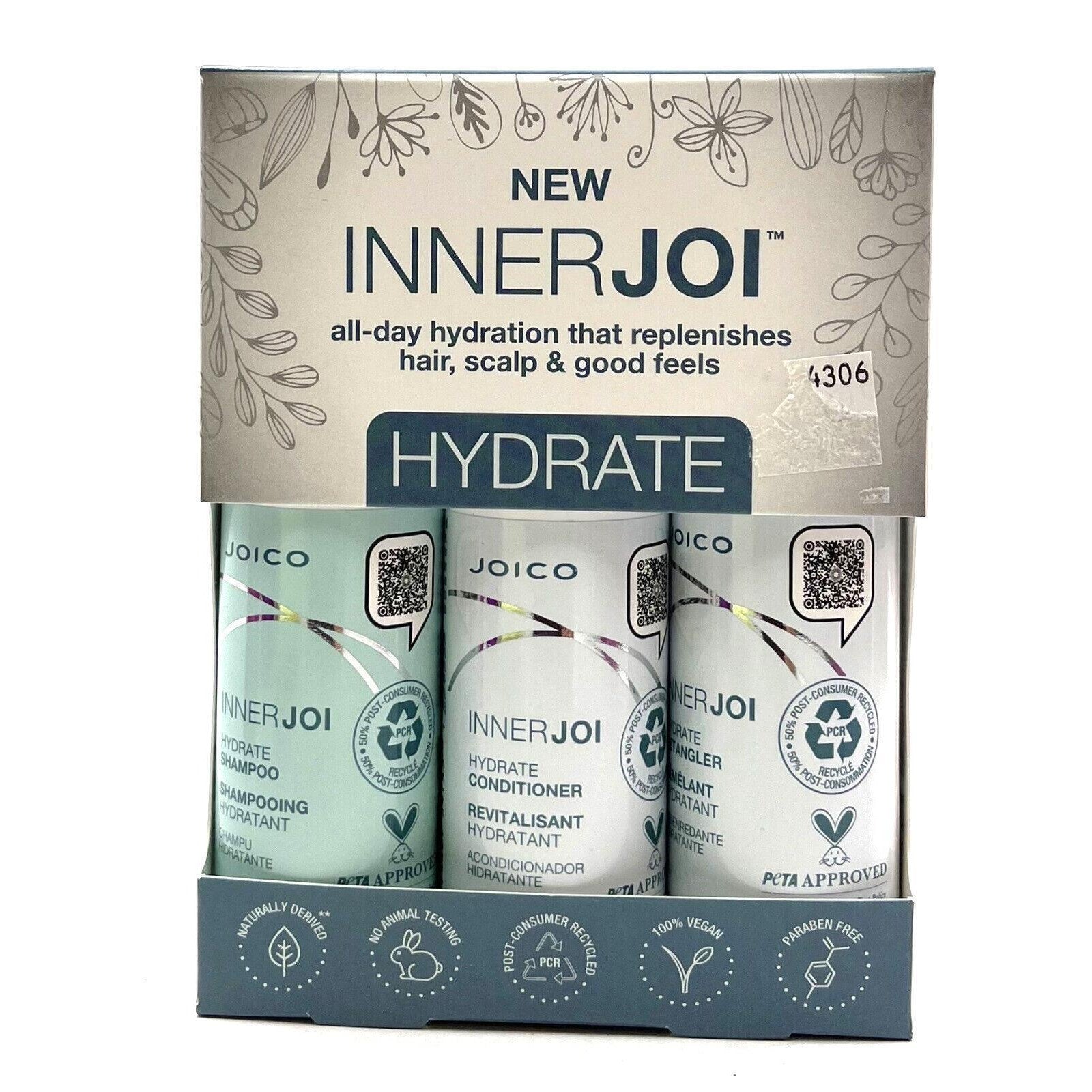 Joico InnerJoi Hydrate Shampoo/Conditioner/Detangler 1.7 oz Each)