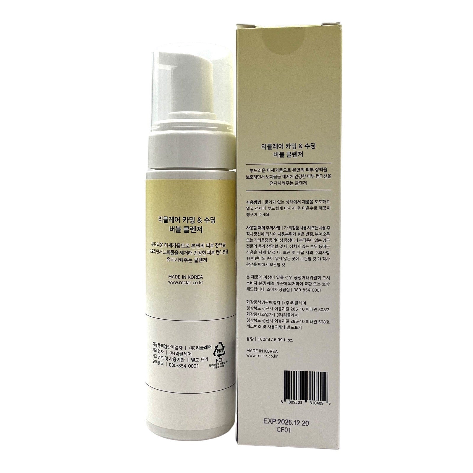 Reclar Korea Luxury Cosmetics Calming & Soothing Bubble Cleanser 6.09 fl.oz