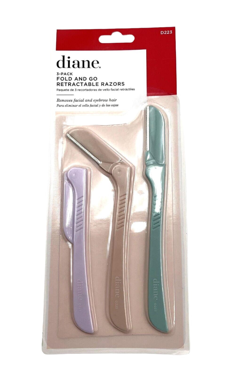 Diane 3Pack Fold & Go Retractable Razors Removes Facial & Eyebrow Hair