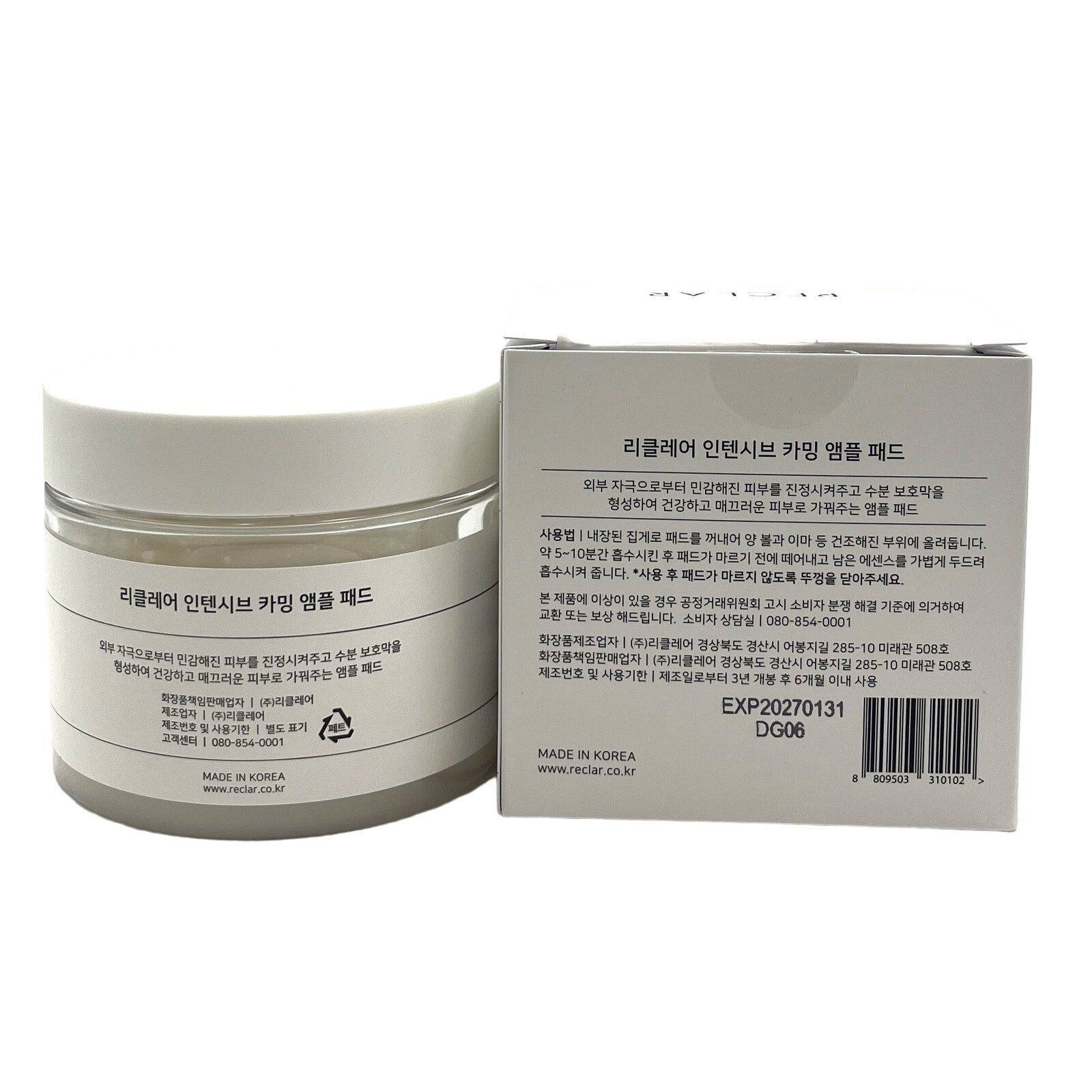 Reclar Korean Luxury Cosmetics Intensive Calming Ampoule Pad 6.08 fl.oz 70 pads