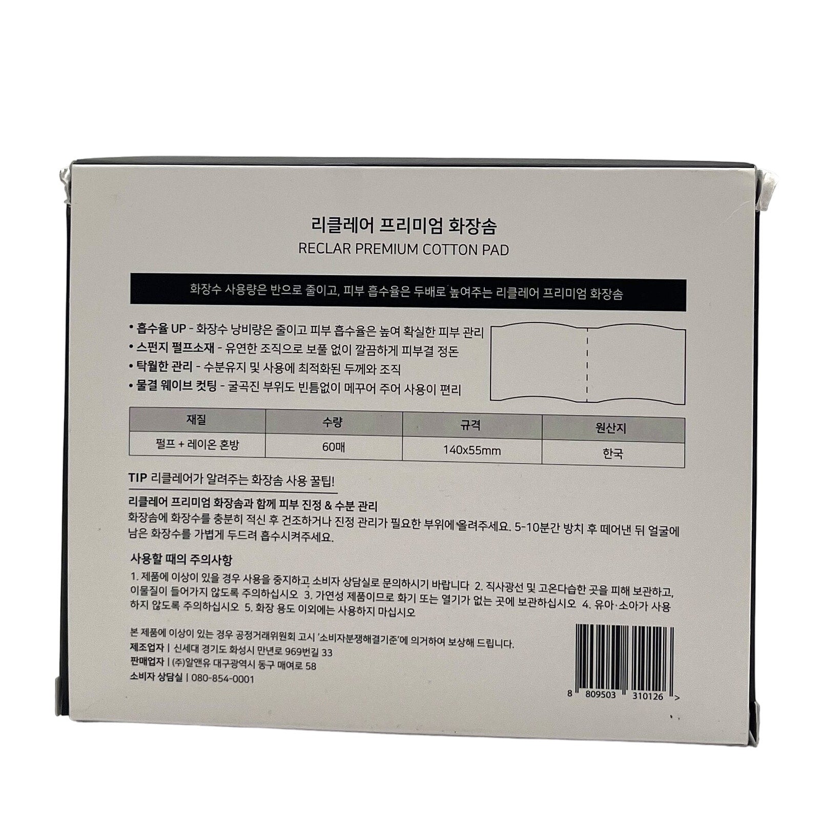 Reclar Korean Luxury Cosmetics Premium Cotton Pad 60 Pads