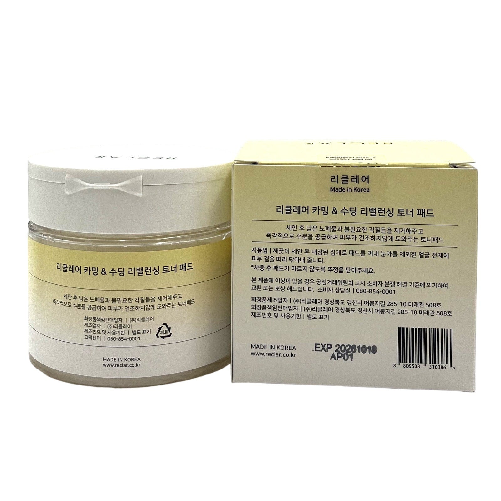 Reclar Korean Luxury Calming & Soothing Re-Balancing Toner Pad 5.07 fl.oz 60pcs