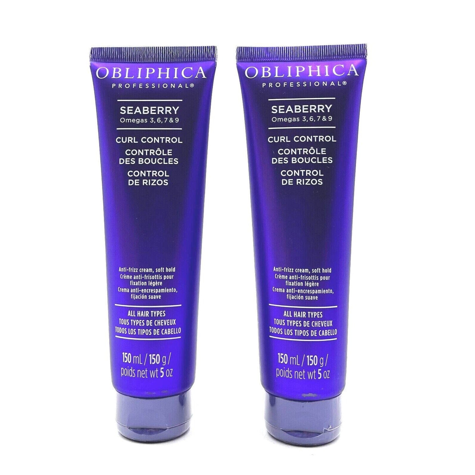 Obliphica Seaberry Omegas Curl Control Anti-Frizz Cream, Soft Hold 5 oz-2 Pack